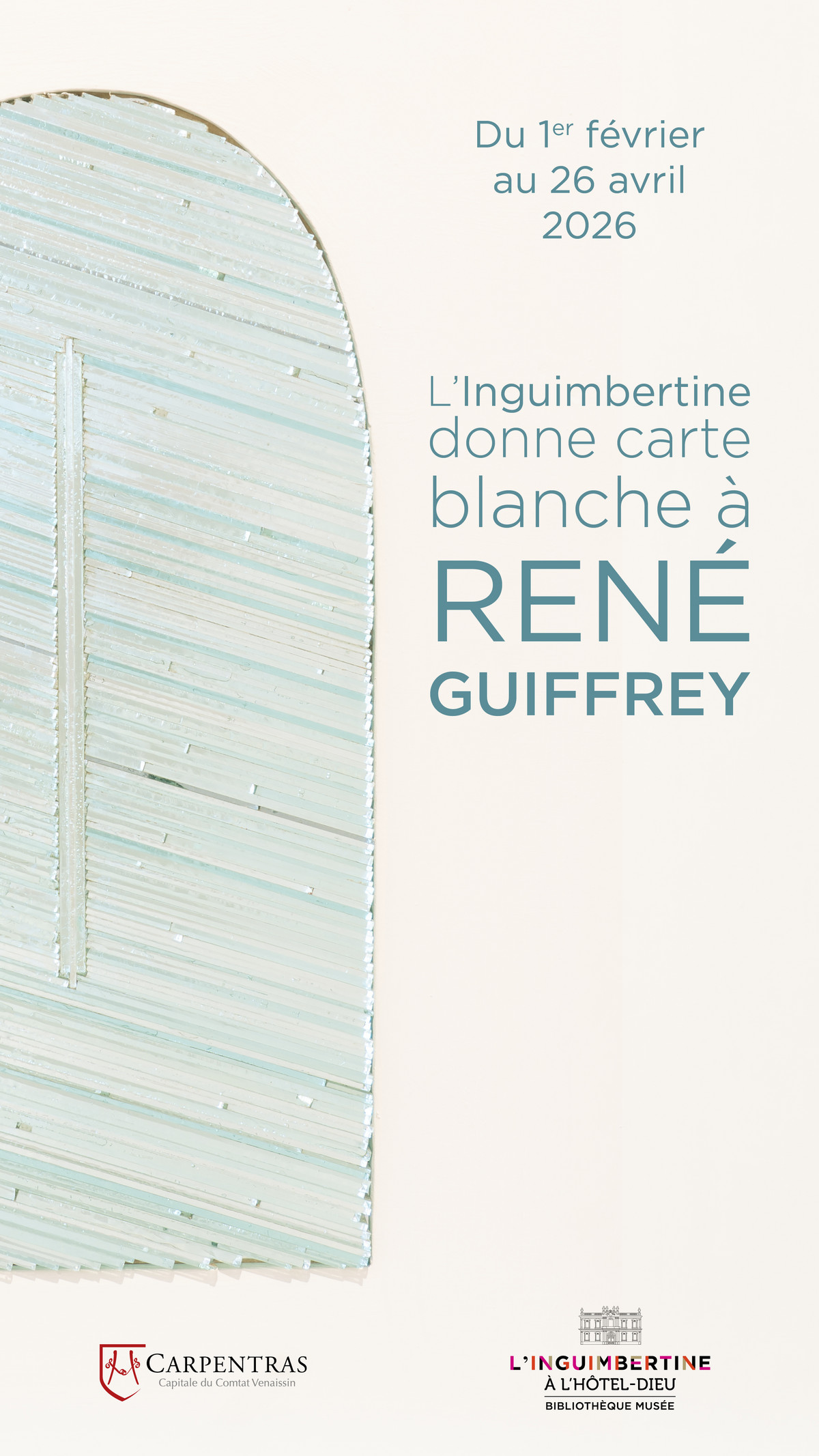 L’exposition René Guiffrey à l’hôtel-Dieu est née de l’idée de réunir une centaine de ces œuvres explorant le blanc et la transparence dans un monument du XVIIIe siècle dont le programme architectural répond au souci aériste en multipliant les entrées d’air et de lumière dans le bâtiment, dans de vastes salles aux murs historiquement blanchis.